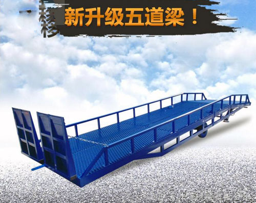 淄博登車橋-集裝箱登車橋-叉車搭橋-折疊式登車橋是與叉車配合使用的貨物裝卸輔助設備。有了它,叉車能直接從地面駛入汽車車廂內部進行批量裝缷作業(yè)。產品采用人工液壓動力,不需接動力電源,移動式登車橋坡面采用特制的高強度齒形鋼格板,具有的防滑性能,使叉車有更好的爬坡能力和操控性。即使在雨雪天,仍能保障正常作業(yè)。隨機配置的剎車墊,能有效防止叉車在登車橋上行走作業(yè)時,登車橋發(fā)生溜車及移動以保障作業(yè)安全。只需單人操作,即可實物的安全快速裝卸。